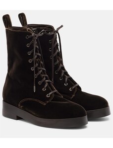 Aquazzura Ben 20 leather-trimmed velvet combat boots