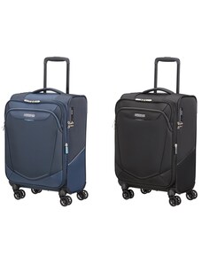 A Samsonite által forgalmazott AMERICAN TOURISTER márka kiváló termékei komoly minőségellenőrzésen esnek át!A képen látható divatos kis bőrönd minden utazóhoz illik, aki tartós, megfizethető és modern poggyászra vágyik! A dinamikus stílus ihlette a kínált American Tourister REJOY sorozatát. Függőlegesen bordázott héjazat, Ezüst betűkből kirakott márkajelöléssel ellátott, fekete kerekekkel, A bőrönd kívül ellenálló, de rugalmas polipropilén anyagból, belül a környezettudatosságot szem előtt tartva , újrahasznosított PET palackokból nyert Recycled poliészterből készül. A kabinbőrönd méretei a szigorúbb légitársaságok paramétereihez is igazodik, pár napra való ruhanemű pakolható bele kényelmesen. A három tagú oldalsó cimke, és a betűs, emogis matricák lehetővé teszik, hogy a bőrönd egyedivé tehető legyen.Részletesebben a két különböző kék árnyalatban rendelhető kis bőröndről : - elején mutatós America Tourister logóval látták el - tetején lévő emelőfogója gumis anyagú, rugós, színazonos - masszív alumínium teleszkópja állítható, kétágú, teljesen betolható - négy dupla, fekete küllős kereke teljesen körbeforgó, maximális mobilitást biztosít, a test melletti sétáltatásra tervezett - kétirányú zippzárral nyitható, mely védősínben fut - a zippzárak lezárásához oldalra szerelt, biztonságos, három állású, TSA rendszerű számzár áll rendelkezésre - beltere esztétikusan kialakított, szürke, és külső színnel azonos részletekkel feldobott anyaggal bélelt - alsó részében keresztpántos gyorscsatos ruharögzítő használható - fedelének raktere, átlósan szabott hálós zippes zsebbel bővített válaszfallal elkülöníthető Garancia :2 évAnyaga: Polypropilén, belül RECYCLED PET poliészterMéret:: 40 x 55 x 20 cm 35 l 2,4 kg