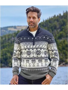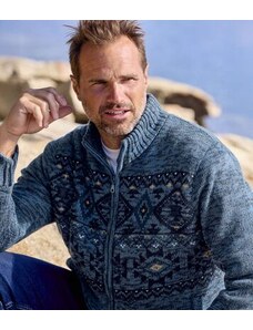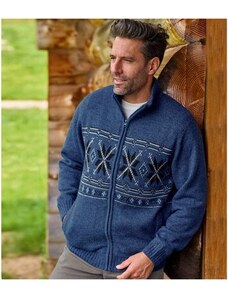 Jacquardmintás, sherpa bélésű kötött kardigán Atlas For Men Kék