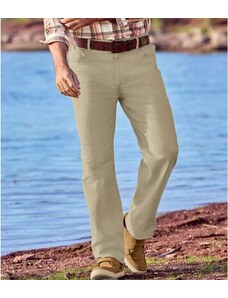 Stílus és kényelem! Ez a nadrág olyan erős és kényelmes, mint a klasszikus farmer. Twill szövetből (kb. 250 g/m²) készült, amely elasztánnal van dúsítva, hogy még nagyobb mozgásszabadságot biztosítson. Könnyen hordható, Regular szabása minden testalkathoz illik. Bújtatókkal ellátott, lapos derék rész, cipzáras slicc és gravírozott fémgomb, valamint 5 zseb: 2 oldalzseb és 1 szegecses jegyzseb elöl, valamint 2 hátsó zseb. 98% pamut, 2% elasztán. Belső lábhossz: kb. 85 cm és lábszárbőség: kb. 22 cm 50-es méret esetén. 30°C-on géppel mosható. Szín: khaki
