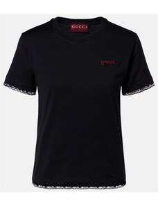 Gucci Embroidered lace-trimmed cotton jersey T-shirt