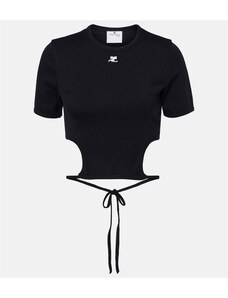 Courreges Courrèges Logo cutout tie-back cotton crop top