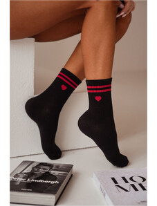 Kesi Fekete női Női pamut zokni szívek és csíkok mintával