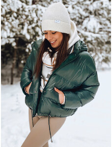 BASIC Sötétzöld női rövid fényes télikabát TY2459