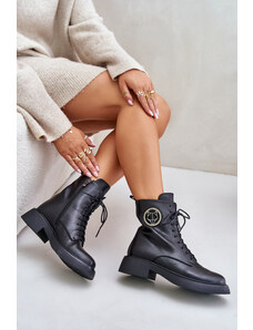 Boto Insulated ankle boots with a flat heel with black Leonise decoration