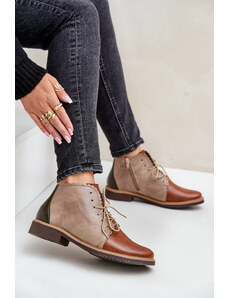 Boto Női velúr bokacsizma, fűzős bézs Nicole 2836