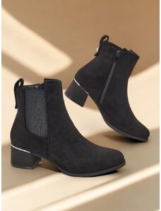 Női bokacsizma környezetbarát velúr anyagból. Oszlop alakú sarkon helyezkednek el, amely stabilitást és kényelmet biztosít egész nap. Szigetelt, melegen tartja a hidegebb napokon, és a cipzár megkönnyíti a felhúzást. A szár oldalán finom arany részlet található, amely elegáns hangsúlyt ad nekik. Ideális mindennapi viselethez, amely mind kényelmet, mind divatos megjelenést igényel. Kérjük, a méret kiválasztásakor a mérettáblázatot használja. A méret kiválasztásakor vegye figyelembe a mérettáblázatot.