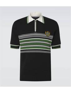 Dolce&Gabbana Embroidered striped silk and cotton polo shirt