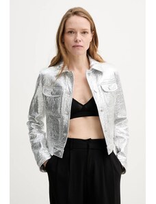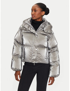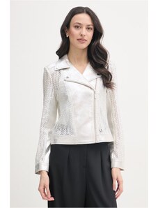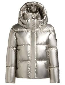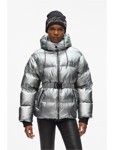BASIC Ezüst fényes kabát szőrmével MELANI TY4486