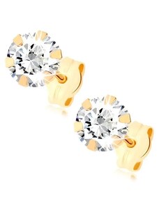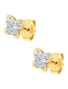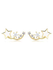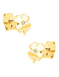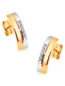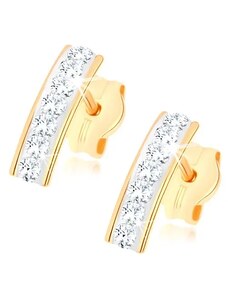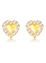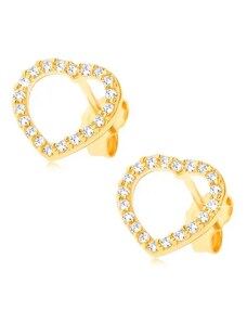 Ekszer Eshop - 375 sárga arany fülbevaló - szabályos szív, átlátszó cirkóniás körvonal S1GG54.35