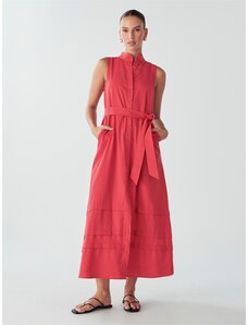 Kesi Włoski Dress with buttons and a tie at the waist in fuchsia color