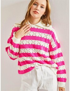 Bianco Lucci Pulóver fukszia / fehér