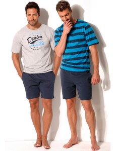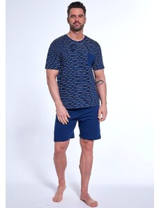 Sötétkék férfi rövid pizsama csíkos pólóval Cornette 325/175 Lagoon kr/r S-2XL měska