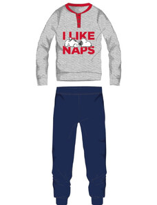 Exity kft. Snoopy férfi vékony pamut pizsama - jersey pizsama - világosszürke-sötétkék - M
