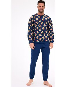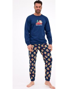 Cornette Sötétkék hosszú férfi karácsonyi pizsama Teddy 115/290 Teddy 2 dł/r Karácsonyi S-2XL meška