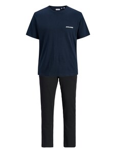 JACK & JONES Hosszú pizsama 'JACEVEREST' tengerészkék / fekete / fehér