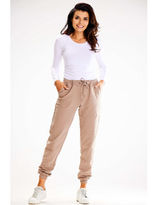 A szabadidő nadrágnak zsebei is vannak és derékban megköthető.
