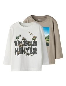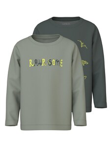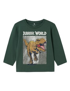 NAME IT Póló 'NMMJurassic World' umbra / fenyő / fekete / piszkosfehér
