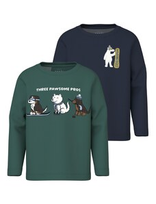 NAME IT Póló 'NMMVaksel' tengerészkék / fenyő / világoszöld / természetes fehér