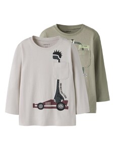 NAME IT Póló 'NMMVIMPEL' szürke / khaki / fekete