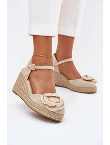 Boto Női Magasarkú Szandál Fonott Részlettel És Horgolt Virággal Bézs Ismilea