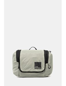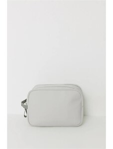 Cosmetic bag: Canvas, with leather details for him and for her lined zipper closure side leather strap for hanging with outside zipper pocket inside mesh pocket strap for hanging open bag - takes up no space even in the smallest bathroom stronger material, holds its shape ideal for travelling, a helper in organization Material: Canvas, leather Dimensions: 29 x 18 x 14 cm