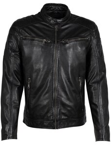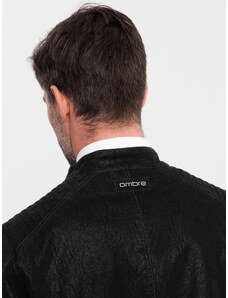 Ombre Men's retro-style biker jacket with stand-up collar - black