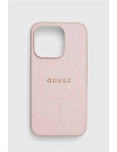 Guess telefon tok iPhone 15 Pro 6.1 rózsaszín, GUHMP15LPSAHMCP
