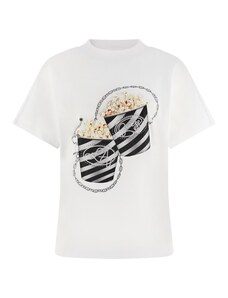 BASIC FEEL GOOD Fehér póló virág rátéttel -RV-TS-9648.30-white
