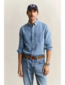ING GANT REG COTTON LINEN INDIGO SHIRT SEMI LIGHT BLUE