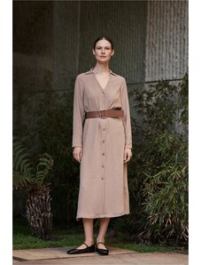 Marisse Beige Midi Dress With A Wide Belt