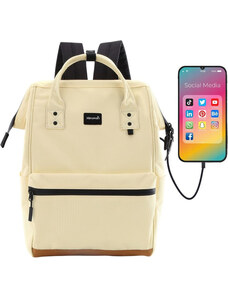 BASIC Himawari khaki-bézs női hátizsák laptop zsebbel és USB porttal 1881