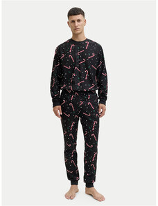 JACK & JONES Hosszú pizsama 'JACLuca' tengerészkék / szürke / fekete / fehér
