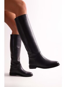 Shoeberry Women's Mori Black Skin Riding Boots Black Skin