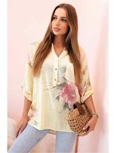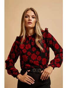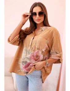 Looking for a blouse that adds a romantic charm to your outfit? This off-the-shoulder women's blouse is the perfect choice! Made from a lightweight, soft-touch fabric, it beautifully accentuates the silhouette and enhances feminine grace. The model features eye-catching ruching and a tie at the bust, subtly emphasizing the neckline. Long, puffy sleeves with elastic cuffs add an elegant touch. The floral pattern makes this blouse suitable for various occasions – from a romantic dinner to casual outings. The size is universal and fits women in sizes S, M, or L.