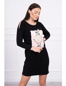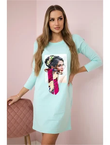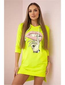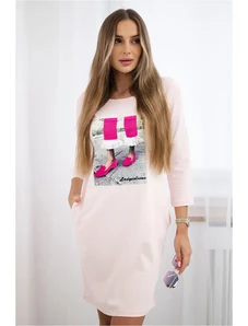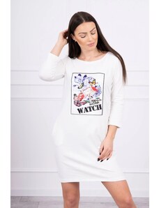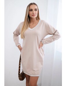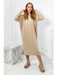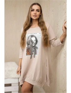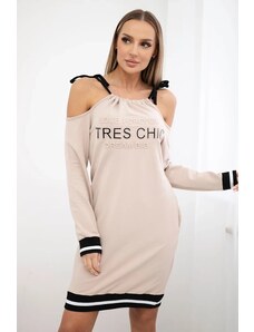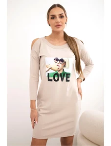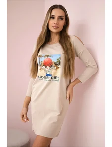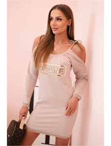 Kesi Women's cotton dress with off-the-shoulder design and OFFLINE print beige