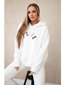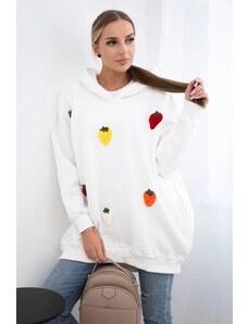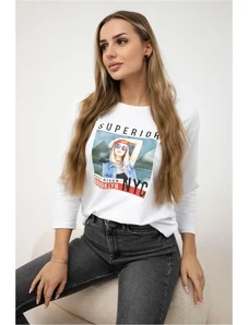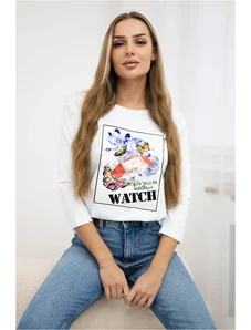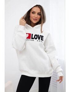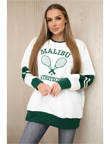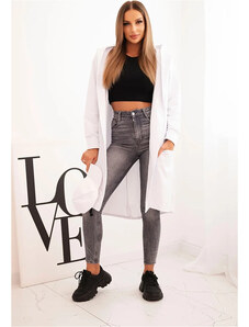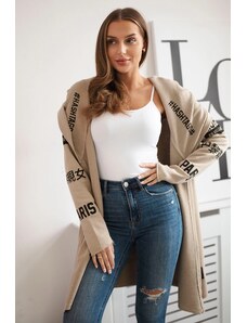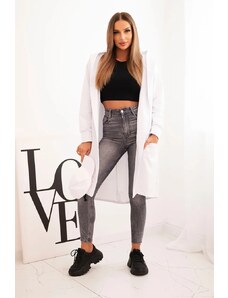Kesi Fehér női aszimmetrikus kardigánnői, hátuljánfelirattal mintával