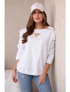 Kesi Plus Size women's viscose blouse with frill and decorative brooch white