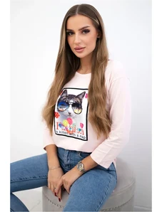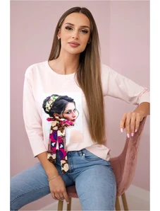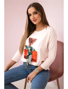 Kesi Women's blouse with an exposed shoulder made of viscose with 3/4 sleeve beige
