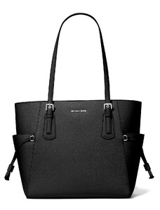 Michael Kors Kabelka Charlotte Large Logo and Leather Top-Zip Tote Bag Black