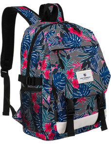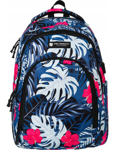Peterson fekete sportos iskolai hátizsák színes növénymintával PTN 79907