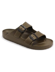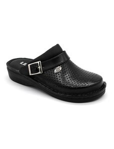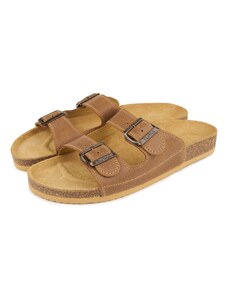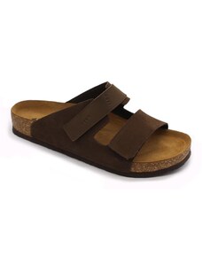 Férfi nappabőr (nagyon puha felsőrész) nyitott papucs, műanyag csúszásgátlós talppal. Mind a két szíj csattal szabályozható. A talpbetét puha, zselés bőr. Ajánlott mindennapos használatra: otthonra , utcai viseletre vagy munkahelyre ( több órás, szaladgálós munka alatt sem fárad el a láb ).