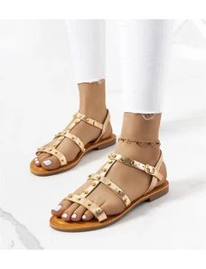 Boto Női szandálok lapos sarkú cipőkkel és arany díszítéssel