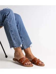 Boto Lewski Shoes Bőr Papucsok Lapos Sarokkal Zazoo 3686 Teve