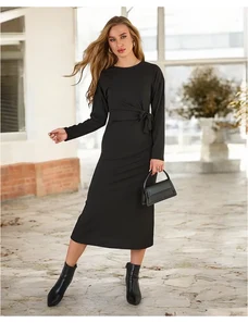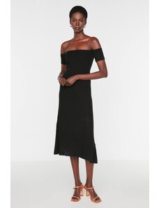 Trendyol Black Midi Knitwear Carmen Collar Dress