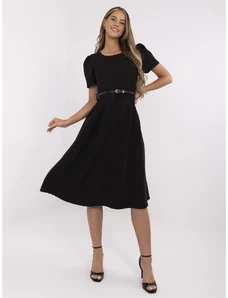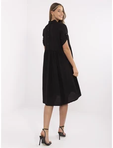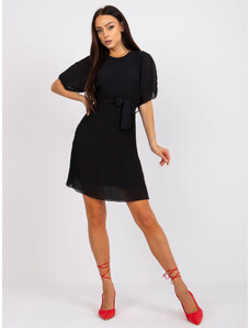 ITALY MODA Fekete elegáns redőzött ruha Matilda masnival a derekában -DHJ-SK-9651-1.20-black