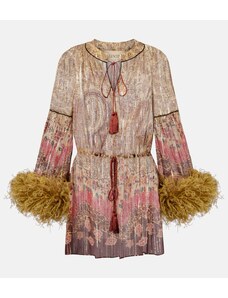 Valentino Paisley feather-trimmed silk-blend blouse