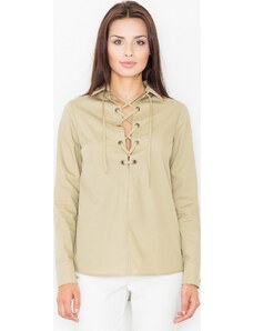 FIGL Olíva színű fűzős blúz M494
