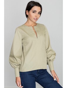 FIGL Díszített ujjú olívaszínű blúz M561