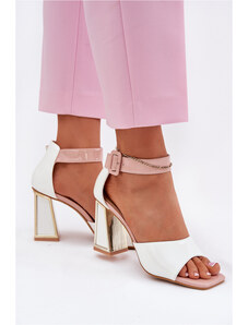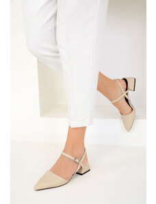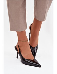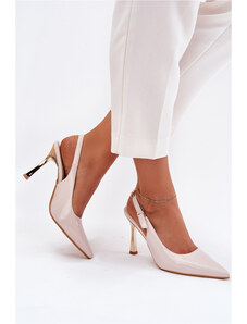 Boto Lakkos Magassarkúcipők Nyitott Sarokkal És Hegyes Orral Világos Bézs Rivori